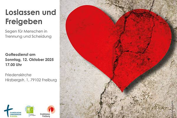 Evangelische und Katholische Kirche in Freiburg laden zu einem ökumenischen Gottesdienst für Menschen in Trennung und Scheidung ein am Sonntag, 12. Oktober, 17 Uhr in der Friedenskirche, Hirzbergstraße 1, 79102 Freiburg.