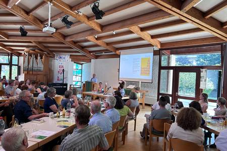 Die Stadtsynode der Evangelischen Kirche in Freiburg tagte am vergangenen Samstag (20.7.) im Gemeindezentrum Matthäus. Schwerpunkt der Synode war die Beratung und Beschlussfassung zum Haushalt 2024/25. Daneben stand das Thema Gebäude im Stadtkirchenbezirk auf der Tagesordnung. Außerdem wurde die Arbeit der Wohnungslosenhilfe für Frauen und die Kältehilfe des Diakonischen Werks Freiburg vorgestellt.